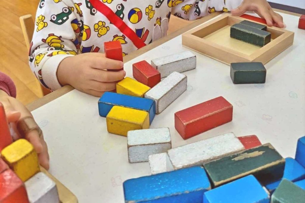 オリジナル積木などの具体物教材・教具やプリント類を用いて、図形・記号・概念などのすべての分野にわたって考える力を伸ばし、また、意欲・集中力・持続力を養います。